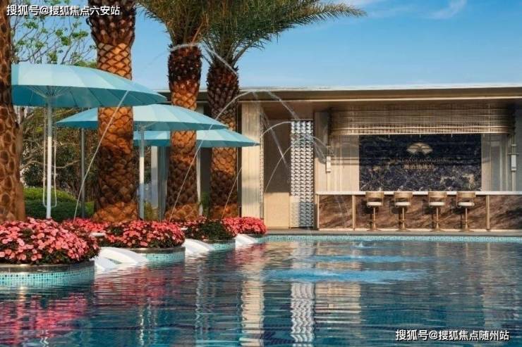 项目采用“一轴两带六大典藏”景观布局,以约280㎡无界泳池和约1000㎡中央草坪为核心中轴。泳池周边铺设多色砖环,融合海派度假风格与都市精致感。
