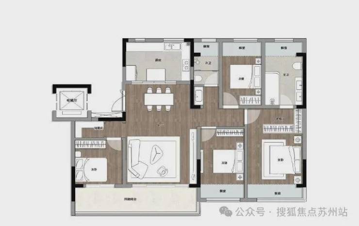 三卧四开间朝南 | 入户电梯独立空间 | 双联阔景阳台 | 超大开间厨房外接餐厅 | 主卧宽奢套房