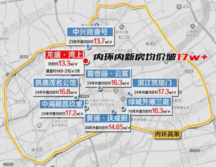 今年内环重磅事件:新房均价突破17w+大关,并且销售情况都十分震撼!中海顺昌玖里17.2w的均价,200亿货值当天售罄!同样内环内的「龙盛·湾上」一期才13.3w/㎡,价格优势突出!(数据来源于网上房地产,仅供参考)