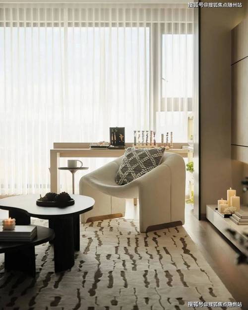 8号楼采用彩釉玻璃,1-7号楼建筑立面采用玻璃以及铝板,整体风格简洁又通透,现代感强。围合式布局,将《富春山居图》中的意境融入到万平中心花园之中,以入意、结庐、入画、流水、观月、乐境六境,探寻富春的至美画境,打造六重至美空间。