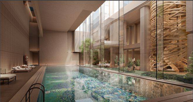 项目深刻理解当代峯层对社交、健康与私密的多元需求,即便在有限的地块内,仍深挖空间,打造了约1800㎡的私享顶奢会所。由全球顶奢酒店设计标杆CCD执笔,会所内设社交宴会区、私宴厅、茶室与专属酒吧,满足从商务应酬到亲友雅聚的全场景需求。八大主题景观场景的营造,从百年梧桐下的静谧巷道到充满未来感的艺术庭院,让归家之路成为一场穿越时空的美学体验。每一户均享受着远超同类豪宅的户均会所资源占有,这在当今的顶豪市场中,堪称顶尖水准。