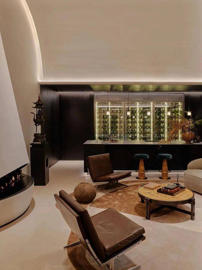 他借鉴度假酒店动线逻辑,将空间清晰划分为静区、动区及后勤区。维修人员可通过独立通道作业,不影响主人生活。同时,SPA、影院等功能互联互动,让主人在享受休闲配套之际,仍拥有充分的私密与宁静。