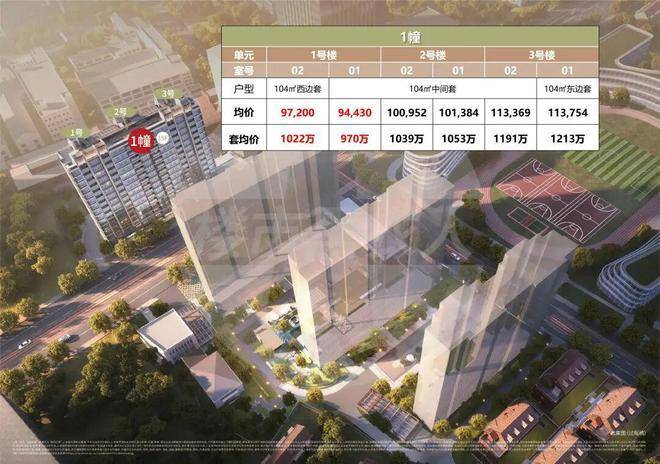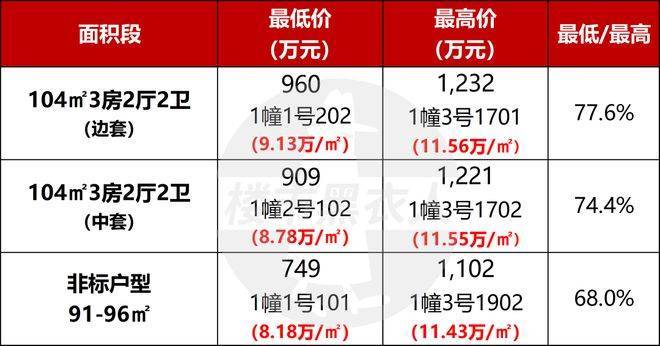 1号楼01室中间套<02室边套,总价仅900万出头;而最右侧3号楼的同类房源,套均总价要高出近200万。