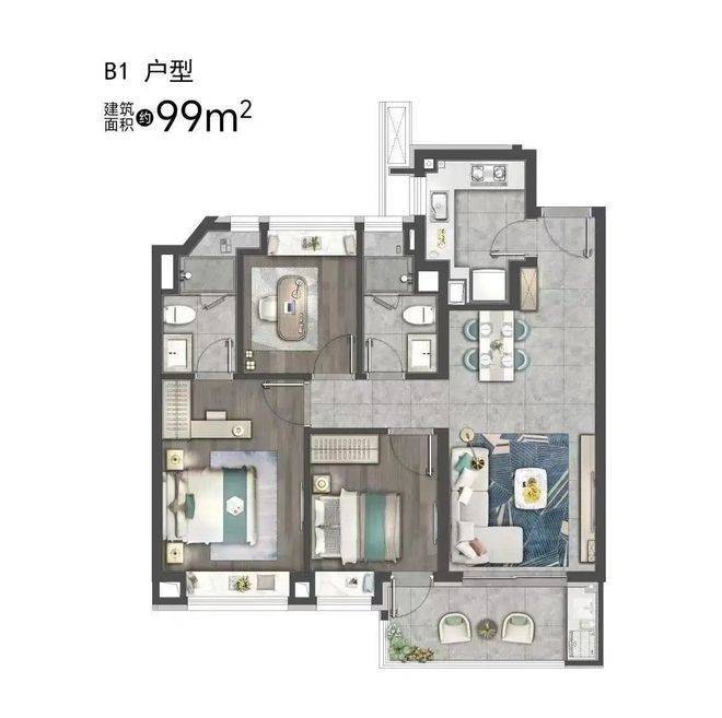 套内建筑面积=套内使用面积+套内墙体面积+阳台建筑面积