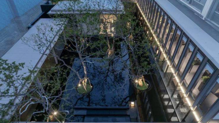下沉庭院面积超约 350㎡,以开阔尺度勾勒出一方私密天地。