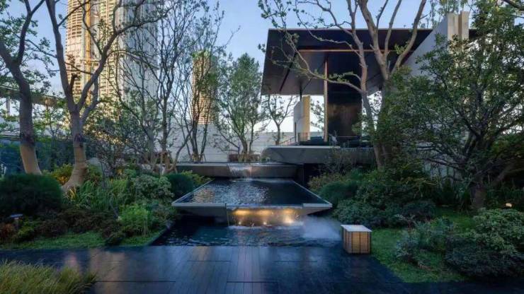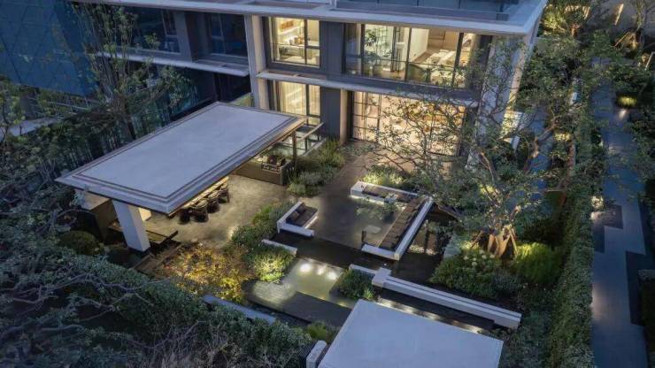 叠墅花园、秘境花园、下沉水院三大景观区域错落环抱,将山野景致嵌入庭院中,尽显山林风花境的新风格。