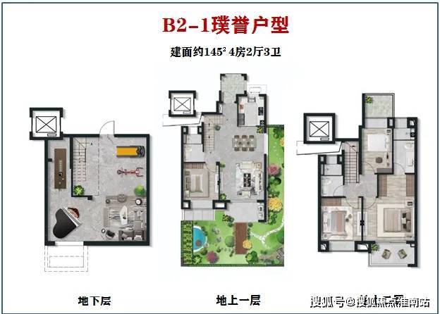 面积上与B1-1户型相同,建面约145㎡,功能区也大致相似。