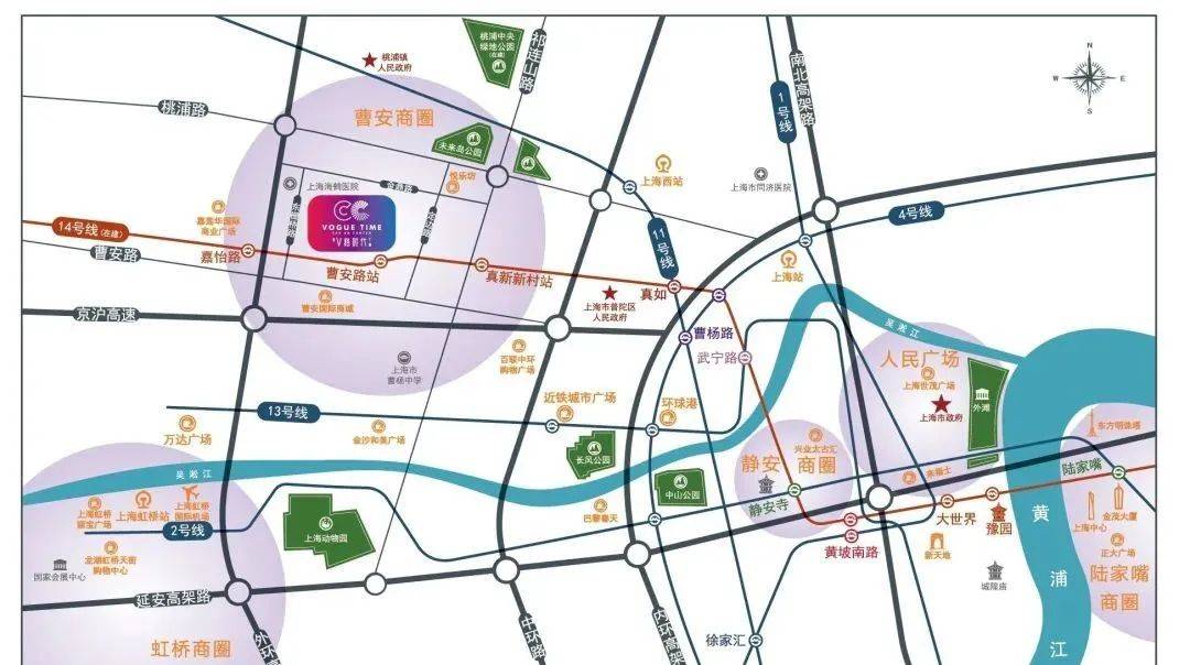 交通配套:通过V格时代B1层可直通地铁14号线(2021年底通车)曹安公路站,途经真如站、静安寺站、黄陂南路站、大世界站、豫园站、陆家嘴站等上海各个区域的核心CBD。可分别换乘1、2、4、7、8、10、11、13号线,项目轨交的优势可以在半小时左右能到达市中心各个核心区域。未来还能与嘉闵线(规划)及18、19、21号线(均在建)进行换乘,将虹桥枢纽、真如、中山公园、南京路、外滩等城市热点区域进行极速串联。