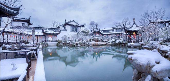 上海桃花源师承苏州园林五进制序列,打造出“迎宾院-主峰院-水溪巷-湖山院-中轴央景”的游园路线。目前,这是中式园林中最富层次的江南园林主轴线,彰显上海桃花源的世家之仪。