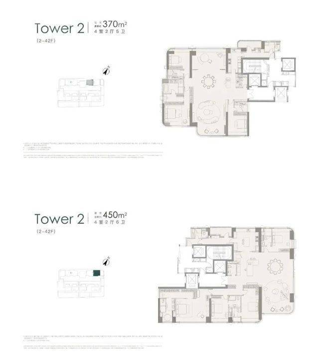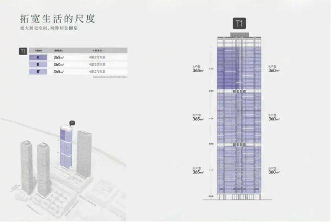 项目本次推售共两栋楼,T1栋主要由360㎡户型构成,T2栋更靠外滩和黄浦江,主要由450㎡户型构成。