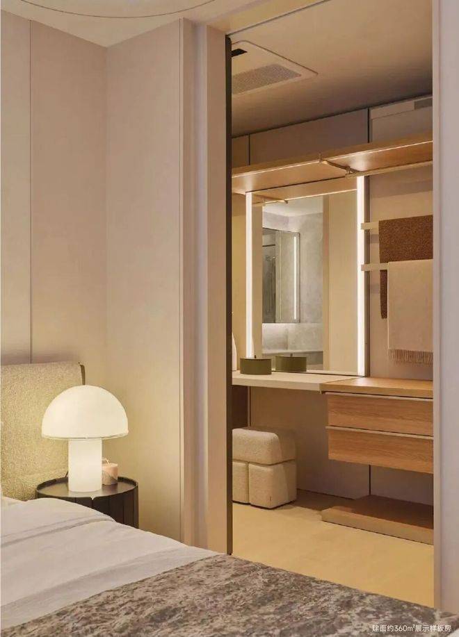 340㎡户型在前两个户型基础上做了户型升级。玄关区域配置了衣帽间和化妆间,主卧分别做了男主衣帽间和女主衣帽间。