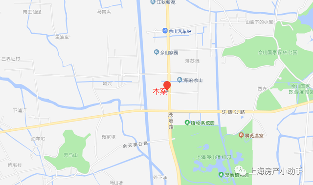 项目紧邻上海辰山植物园,距离佘山国家森林公园直线距离约1.6公里。周围别墅区密布,属于低密社区。与国贸佘山原墅一街之隔。地块内南侧是油墩港水域相通的小型湖泊。