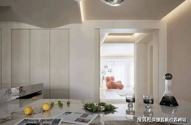 The friendship between space and light moves from minimalism to infinity Embedded kitchen appliances make the layout more open and clear, eliminating all the abrupt words The splashed marble countertop is embellished with several bright colors, exuding a lively and lively atmosphere amidst luxury and elegance