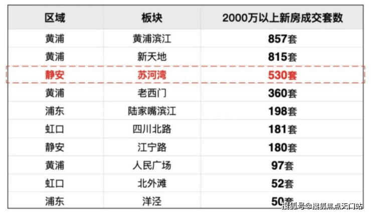第一:去年约2000万以上的新房成交套数,苏河湾是全市第三,仅次于黄浦滨江和新天地.高净值人群对于苏河湾的认可程度,已经逐渐超越了传统的老西门、陆家嘴滨江、人民广场等传统豪宅板块.