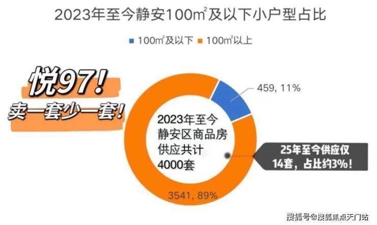 据克而瑞数据库显示,2023年至今的三年间,静安100㎡及以下户型,仅占静安供应总量的10%左右!25年至今,仅且供应了14套100㎡以下小户型,骤减至3%,实在太少!