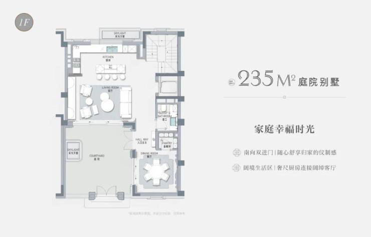 一楼独立客厅、餐厅,彰显世家大族的生活礼序;有天有地的独立庭院,是孩子的游乐场,可以遛狗撒欢,可以莳花弄草,也可以品味春花、秋月、夏风、冬雪。
