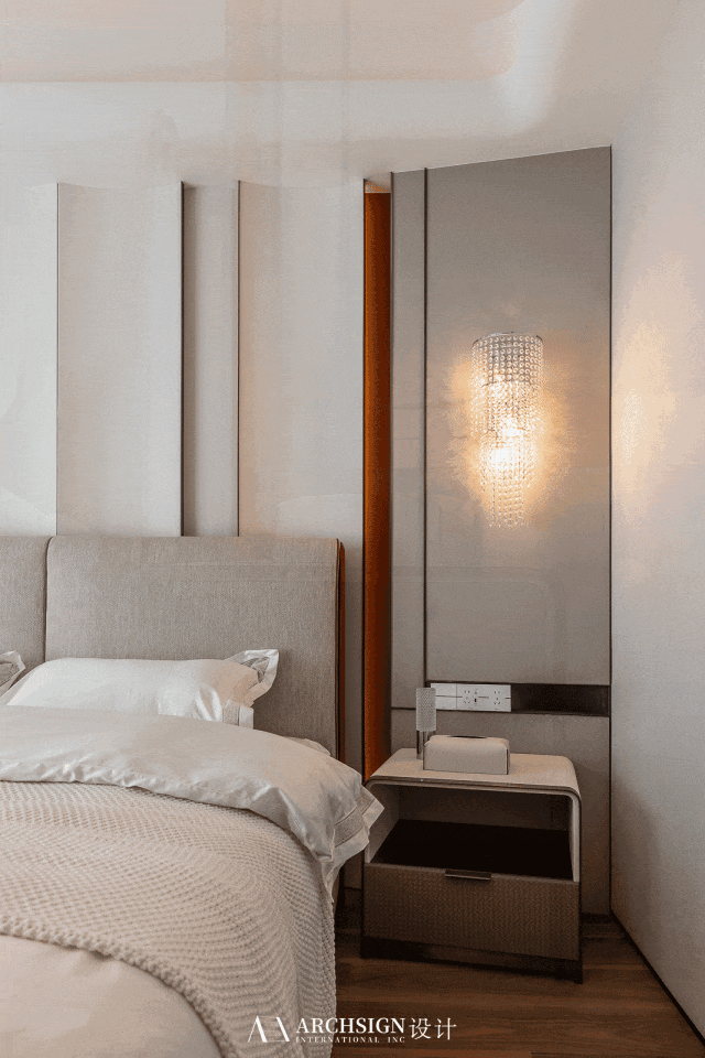 吊灯以阵列感呈现艺术序列,简洁且尊贵;