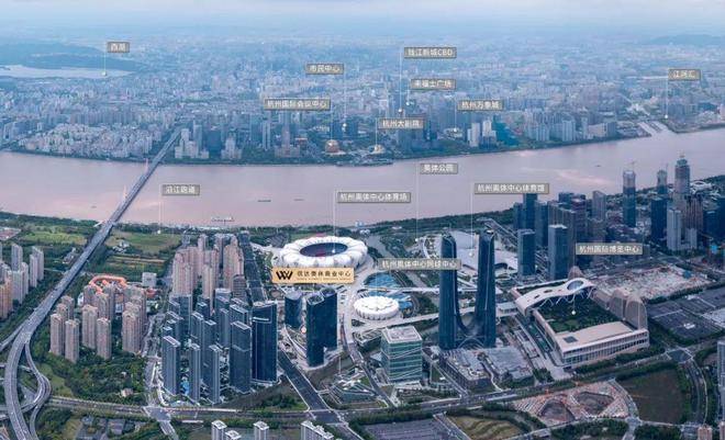 地理位置与开发商:项目位于滨江区奔竞大道与飞虹路交叉口,紧邻杭州奥体中心“莲花碗”,是奥体板块唯一在售一线江景现房。开发商为杭州信达奥体置业有限公司(信达、融创、滨江联合成立),物业公司为杭州滨江物业。34