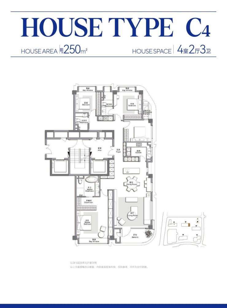 此外,客餐厅一体化、约 270° 弧形观景阳台配全卧飘窗皆为标配。