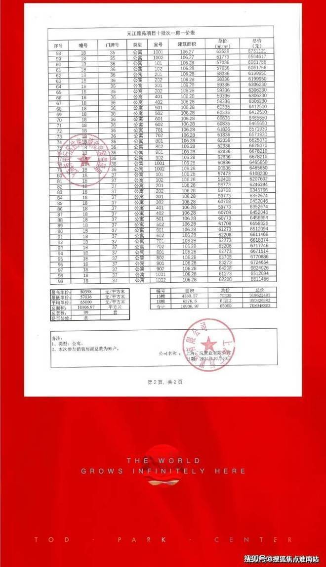 最新一房一价表: