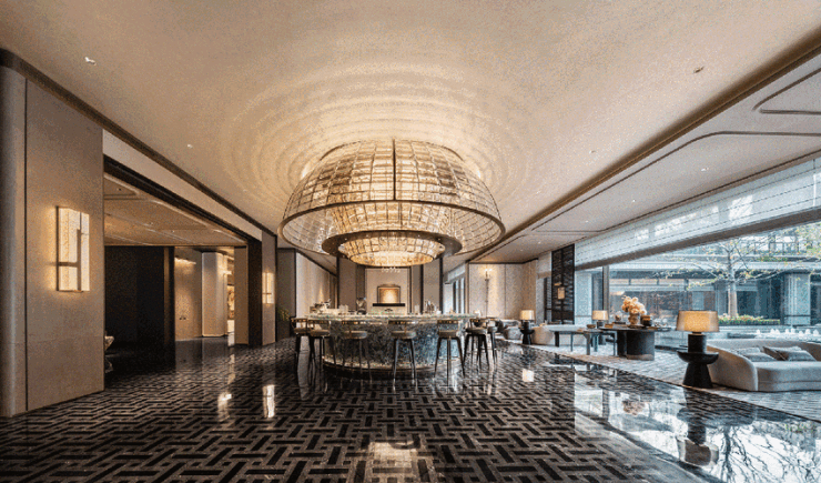 3000㎡下沉式会所含恒温泳池、行政酒廊,地库设计引入丽思卡尔顿酒店灵感。