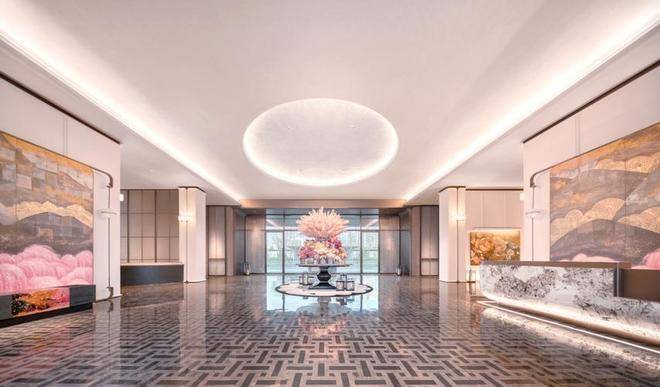 入户大堂墙面的装饰柱从传统旗袍的吸取灵感,展现东西融合的文化内涵。
