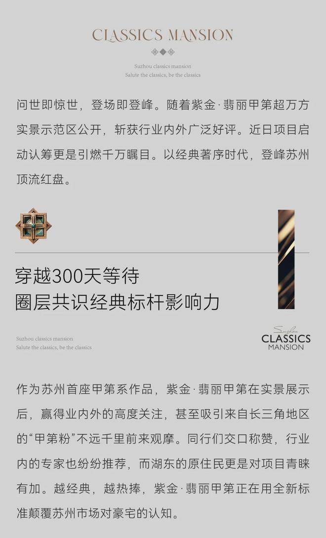 市场热度:2025年一季度以4.8亿元销售额、39套备案量稳居苏州千万级豪宅三榜TOP1,市占率达43%。✅紫金翡丽甲第售楼处电话:400-8558-224✅︎✅︎✅