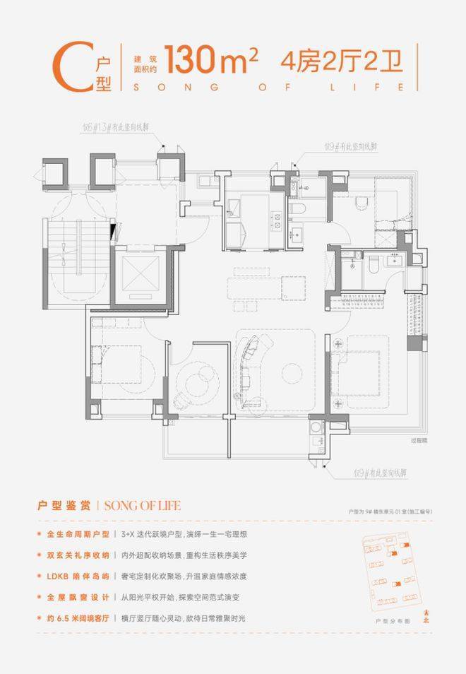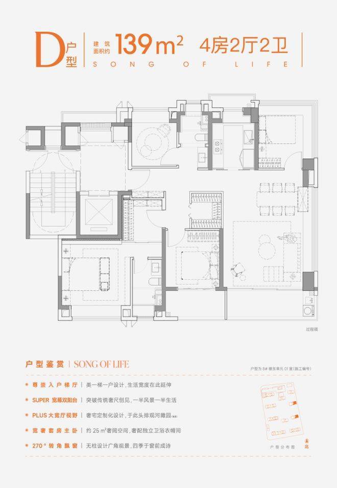 产品类型:纯住宅社区,容积率2.0,绿化率35%,规划508户,主力户型为91-139㎡的三至四房。