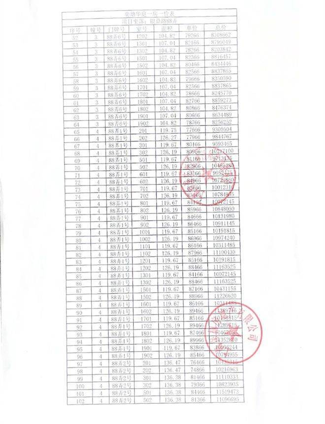 项目一房一价: