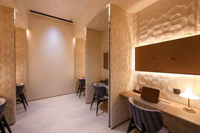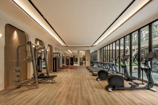 健身房的一大亮点是延续了项目对“她享主义”的设计,除了传统健身器材外,还打造了女性训练区,不仅设计风格更柔和,专属女性的拉伸区也更加复合女性健身习惯。