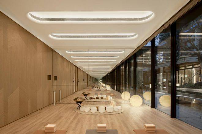 瑜伽室内嵌七组定制音钵,匹配当下音疗的疗愈趋势,通过多元化、国际化的功能带给业主更便捷、更丰富、更松弛的日常体验。