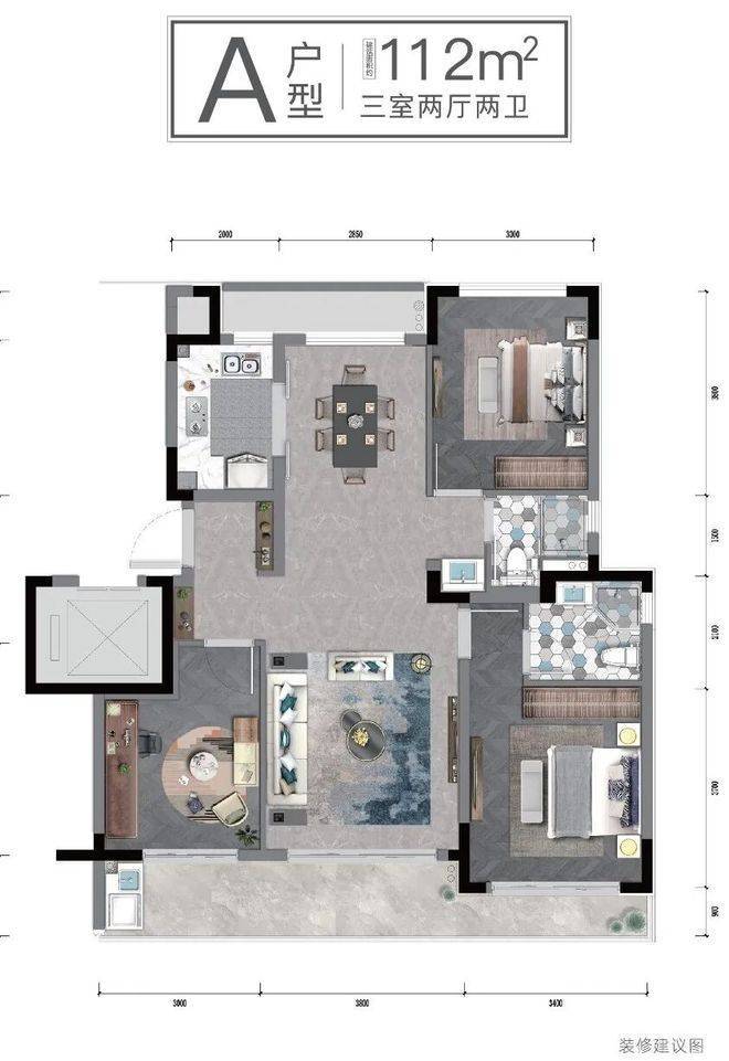 以建面约112㎡为例,三开间朝南,南向总面宽达到约10.2米。