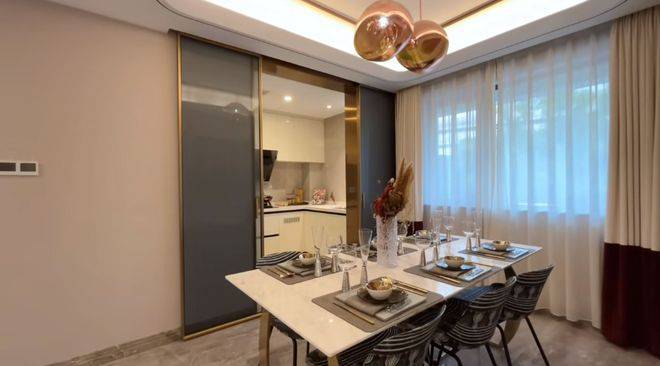 令人惊喜的一点是,独立餐厅,还带大边窗。不管是邀朋友聚餐,还是一家人吃饭,都更加从容宽裕,更有仪式感。