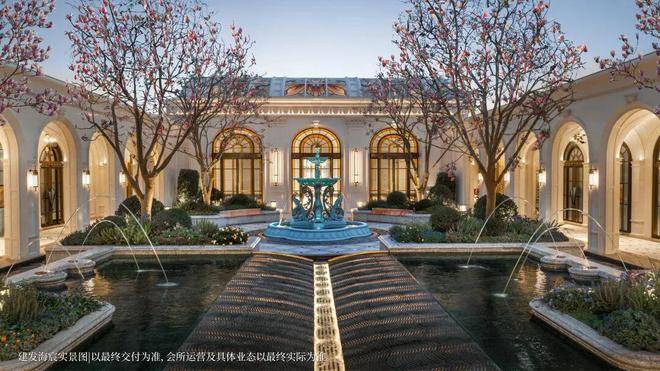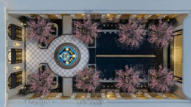以玉兰门庭—迎归大堂—莳花荟为主轴,敬献步履生辉的归家艺旅:玉兰门庭如繁花盛绽,尊华瑞鳞水景聚运生财,双尊铜狮镇守家宅;迎归大堂流转光影艺韵,百羽栖澜艺术雕塑、芦海宸韵非遗绣作流淌摩登气韵;莳花荟中央会客厅移步异景,献映会客、休闲等雅会。