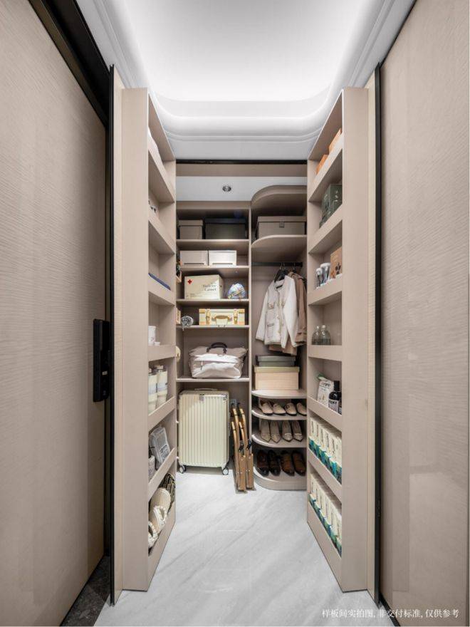独立入户玄关特别设立800库大容量储物区,登山包、婴儿车、滑雪板、行李箱等大物件都能找到安身之处,不再挤占宝贵的居住空间。