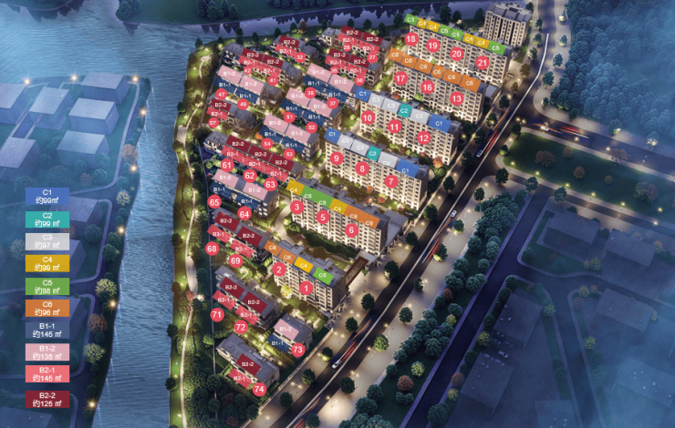 项目双面环河,营造闹中取静、亲近自然的生活方式!洋房和别墅都是坡屋面设计,这意味着洋房顶层和上叠都或有惊喜附赠空间,性价比超高。