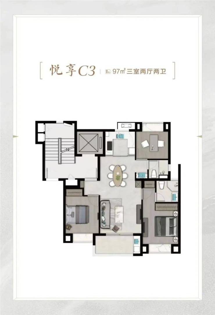 项目打造新中式立面风格,别墅1-3层、洋房1-2层采用来自巴西的维多利亚白天然石材干挂,营造高级、大气的建筑气质。
