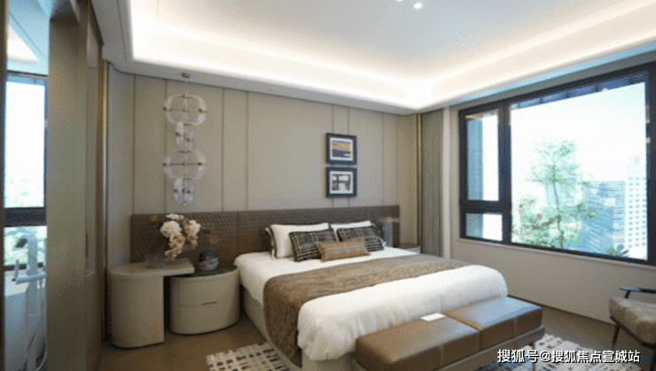 户型设计上,类一梯一户,方厅近50㎡,主卧超级套房。