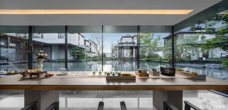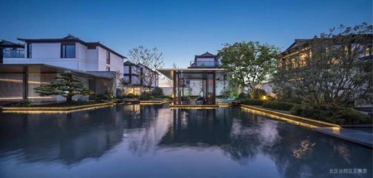 以宋代传奇名画 《西园雅集图》为设计蓝本,借鉴卡洛·斯卡帕的设计手法,通过诗意表达与精美细部,合院入园区域打造三进院落、四重景观、双中央水院与亭台水榭等当代江南名园胜景,举步之间,礼制家仪,气象万干。