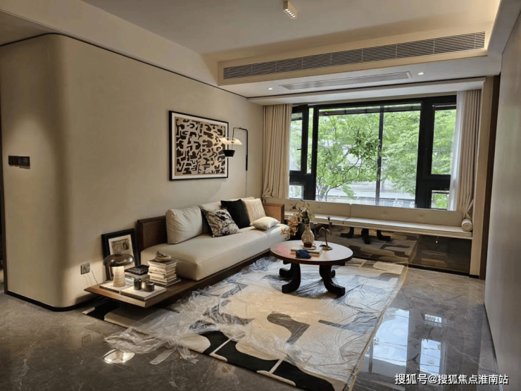 进门映入眼帘的就是衔接超大飘窗的客厅,让会客和休息区充满了开阔的尺度感。
