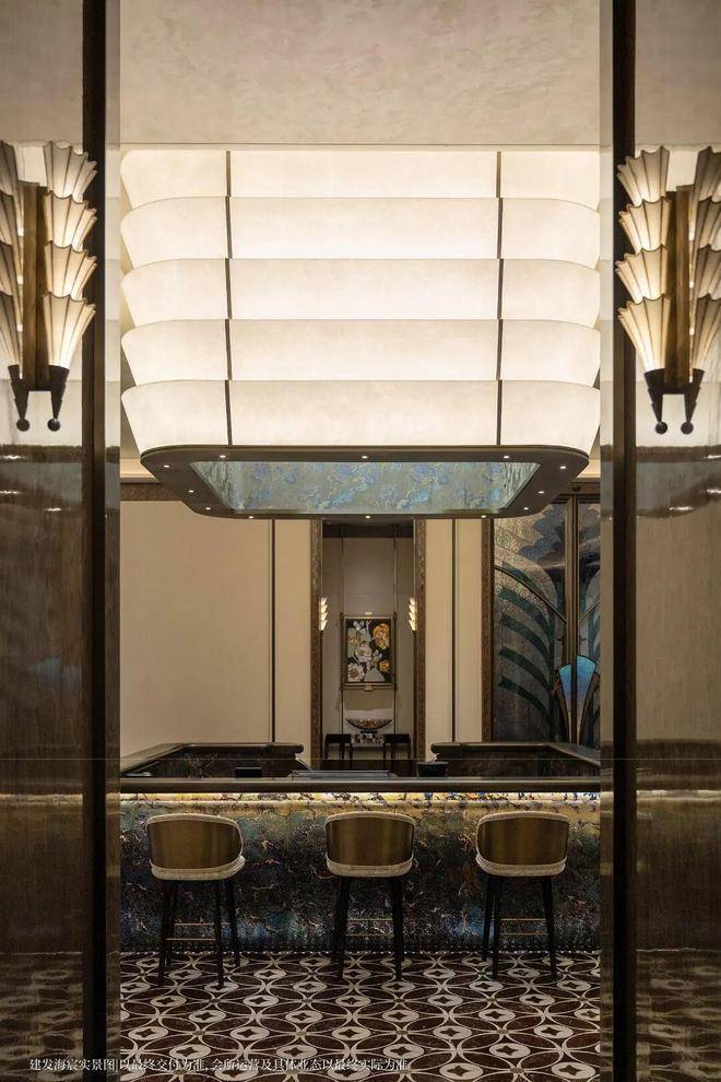 以玉兰门庭—迎归大堂—莳花荟为主轴,敬献步履生辉的归家艺旅:玉兰门庭如繁花盛绽,尊华瑞鳞水景聚运生财,双尊铜狮镇守家宅;迎归大堂流转光影艺韵,百羽栖澜艺术雕塑、芦海宸韵非遗绣作流淌摩登气韵;莳花荟中央会客厅移步异景,献映会客、休闲等雅会。