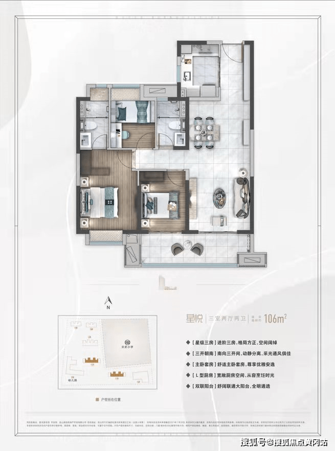 【106户型】建面约106㎡三房两厅两卫,明星户型