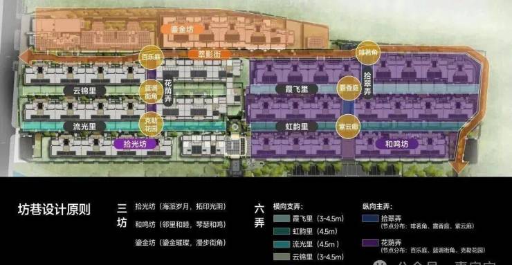 花荫弄、拾翠弄、霞飞里、虹韵里等主题巷道,宽度约3-4.5米,尺度亲切,一步一景