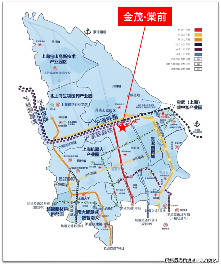 金茂棠前附近将打造宝山站TOD,含金量相当高,是北上海枢纽门户的核心。3地铁(1/3/19号线)+2高铁(北沿江/沪苏通)构建五轨通勤网,未来必然聚合成超级流量场。