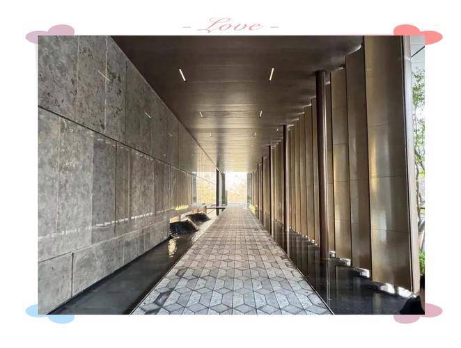 入口两侧油橄榄树姿态优雅,自带松弛感;归家序厅两侧有种植桂花树,隐喻"蟾宫折桂"的祝福;地面铺装芝麻黑花岗岩与福鼎黑花岗岩,不仅沉稳大气还有活泼灵动……