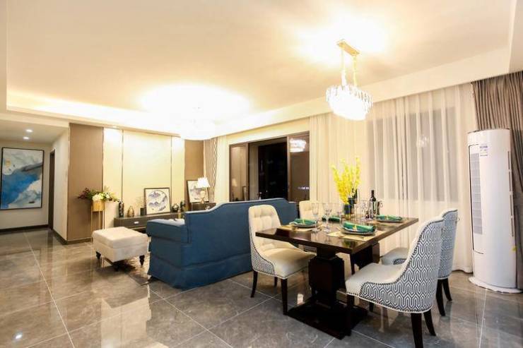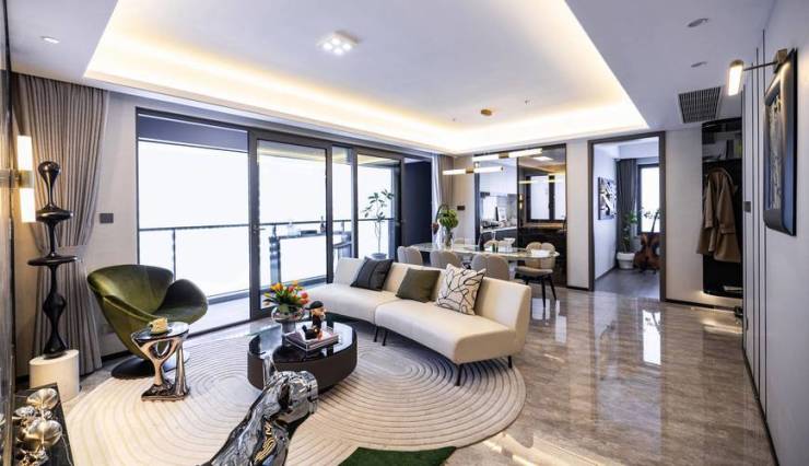 随处可见的仿大理石肌理的岩板,散发出温润而典雅的气质,妥妥的板块高品质楼盘。