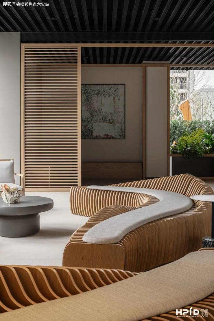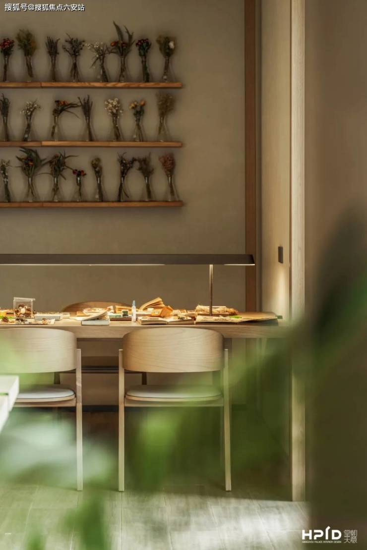 休闲区不规则形的长条座椅,犹如阳光把枝叶投射在墙上,树影摇曳。自然元素的设计,仿若置身于林间书屋,安置内心,与自己相处,与所爱的人或事相处。岁月静好,现世安稳便是人间美好。
