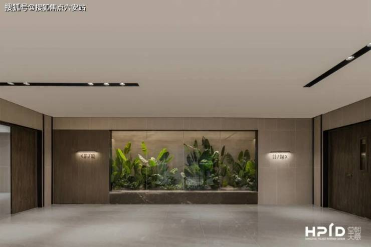 归家大堂的墙面采用了山形的自然肌理,不仅增加了空间的层次感,也让人感受到山间清新的气息。绿植的生机和墙面的山形肌理相互呼应,使空间显得更加完整和和谐,让归家大堂感觉有了凝聚力、吸引力和温度。