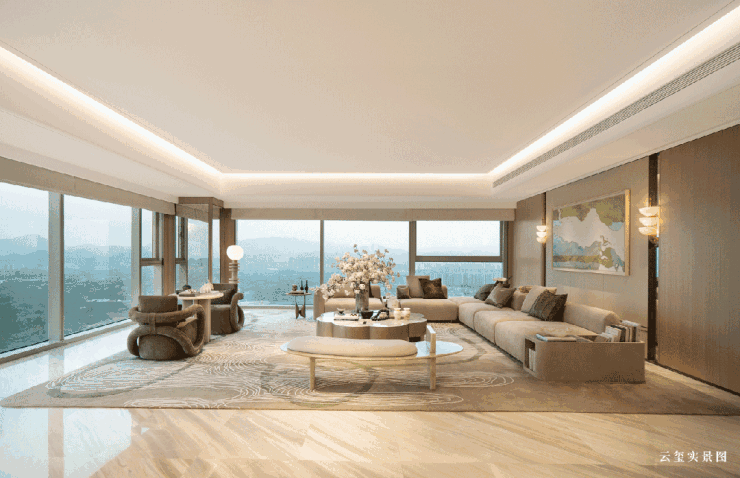 以“站立的西溪”为灵感打造的建筑体块,勾勒出“都市山水江南”的水墨意境,在世界级中轴线上擘画出新天际;超百方的巨幕会客厅,搭配270°环幕全景落地窗,将城市天际线与西溪生态盛景化作窗前流动的画卷,每一次极目远眺都是对高奢生活的时代注解。
