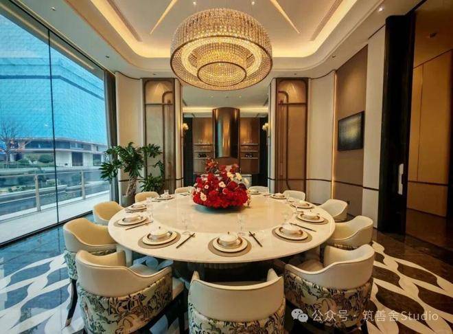 大门内外两重门厅景墙运用月光米黄石材近1000 方,搭配香槟金金属线条,汲取爱马仕全球旗舰店的双曲面叠墙造景手法,增加景墙奢华质感。